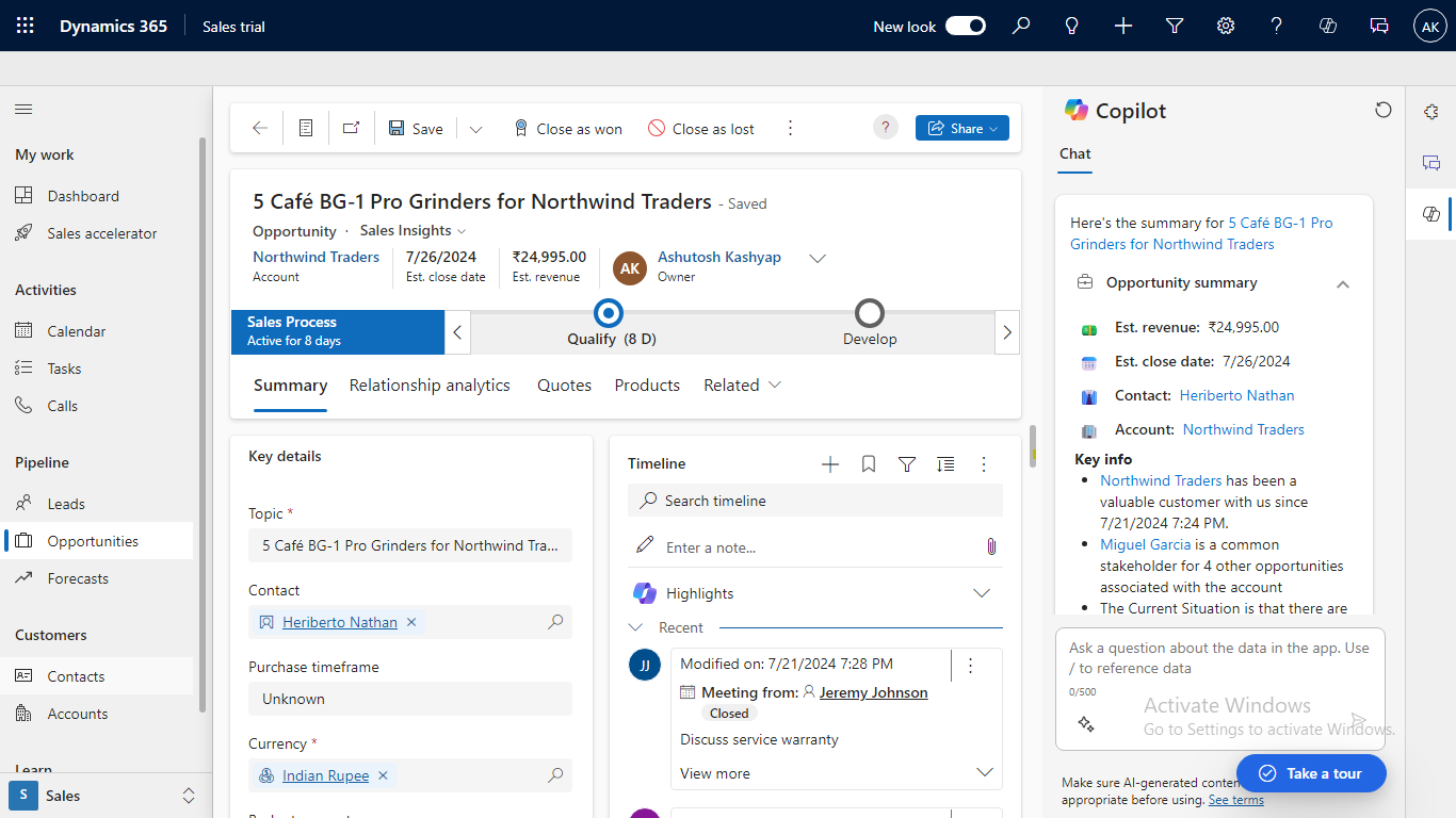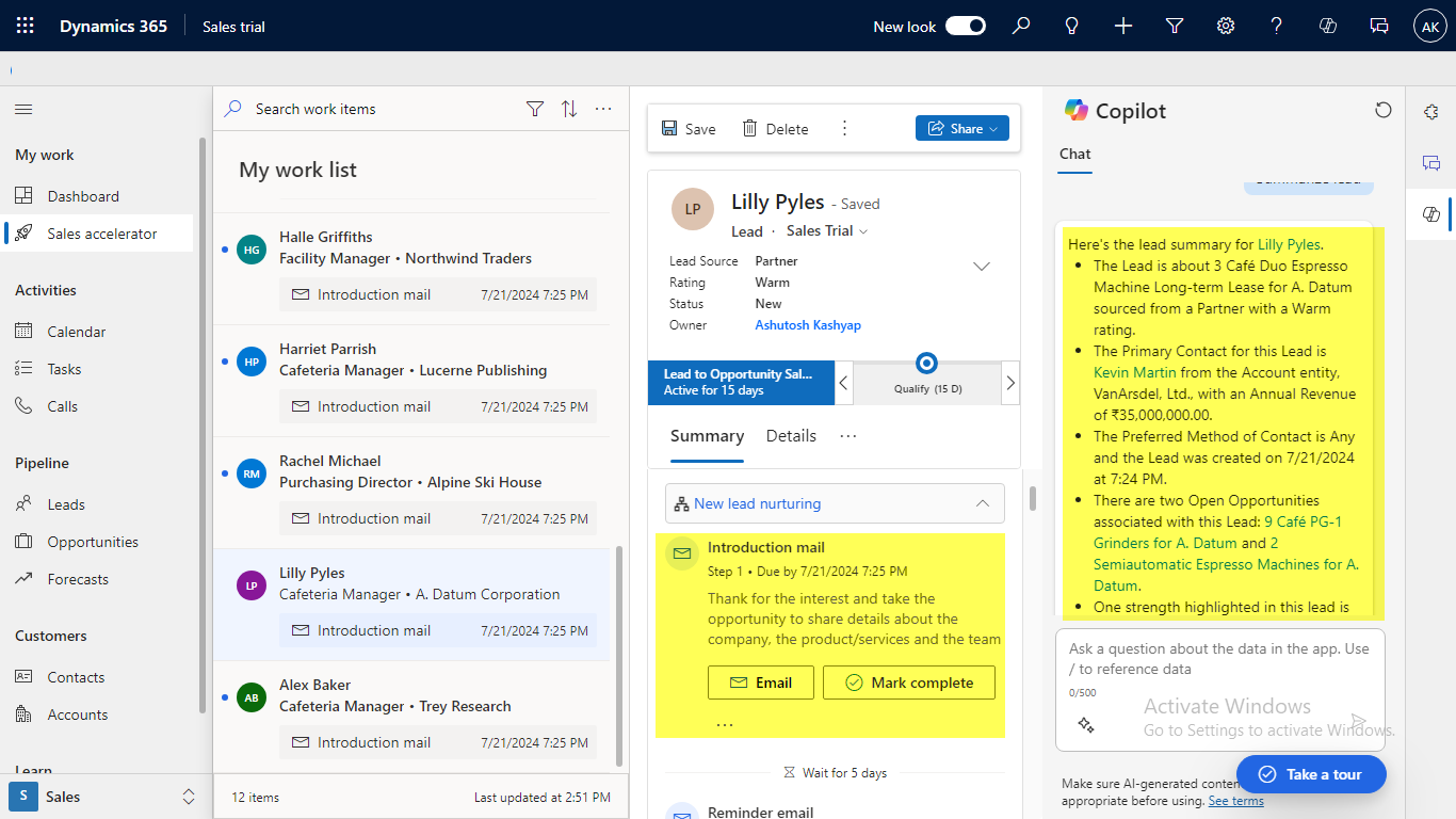 See Dynamics 365 Sales in action. Watch the demo and take the guided tour to explore how AI, automation, and intelligent insights can transform your sales performance.